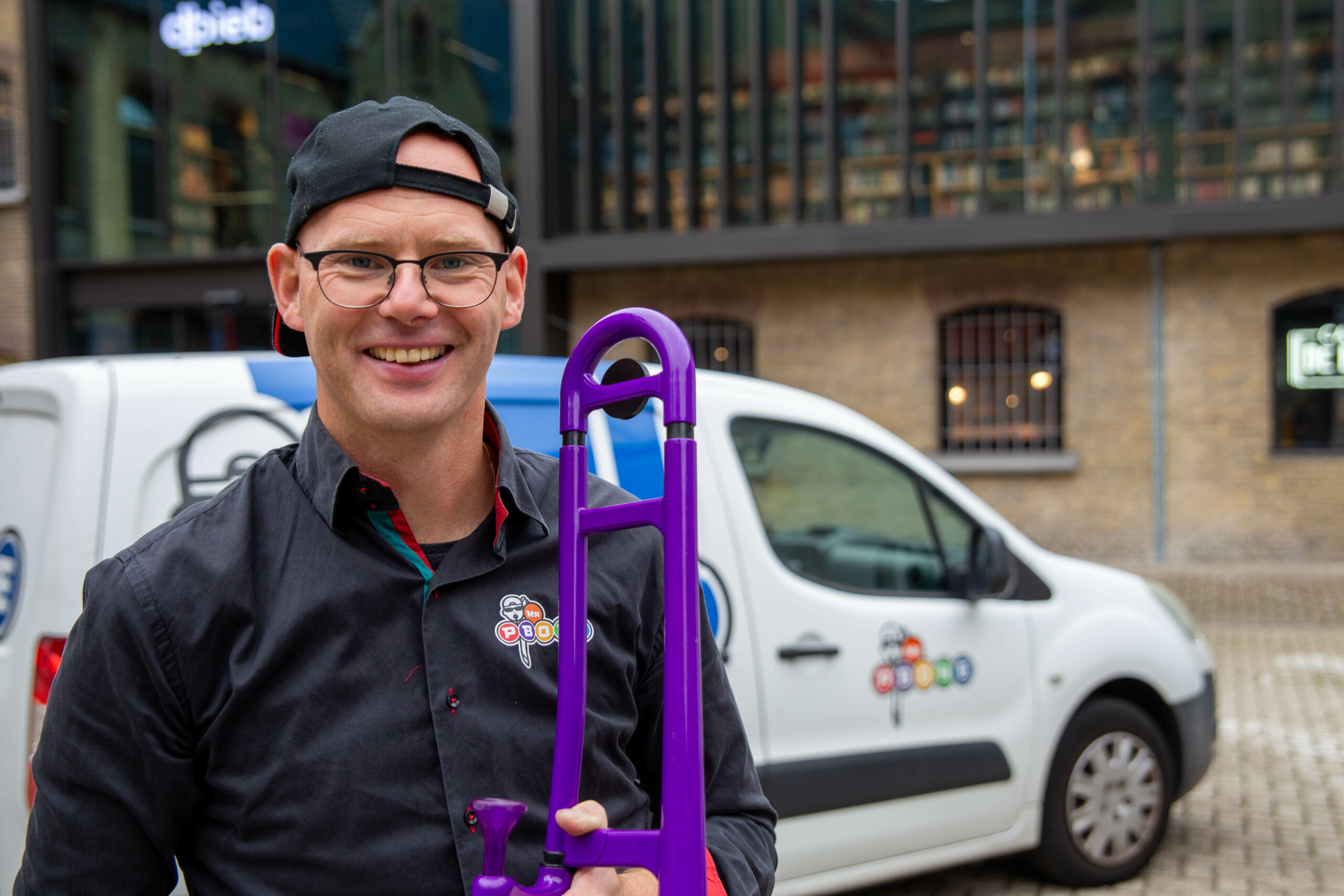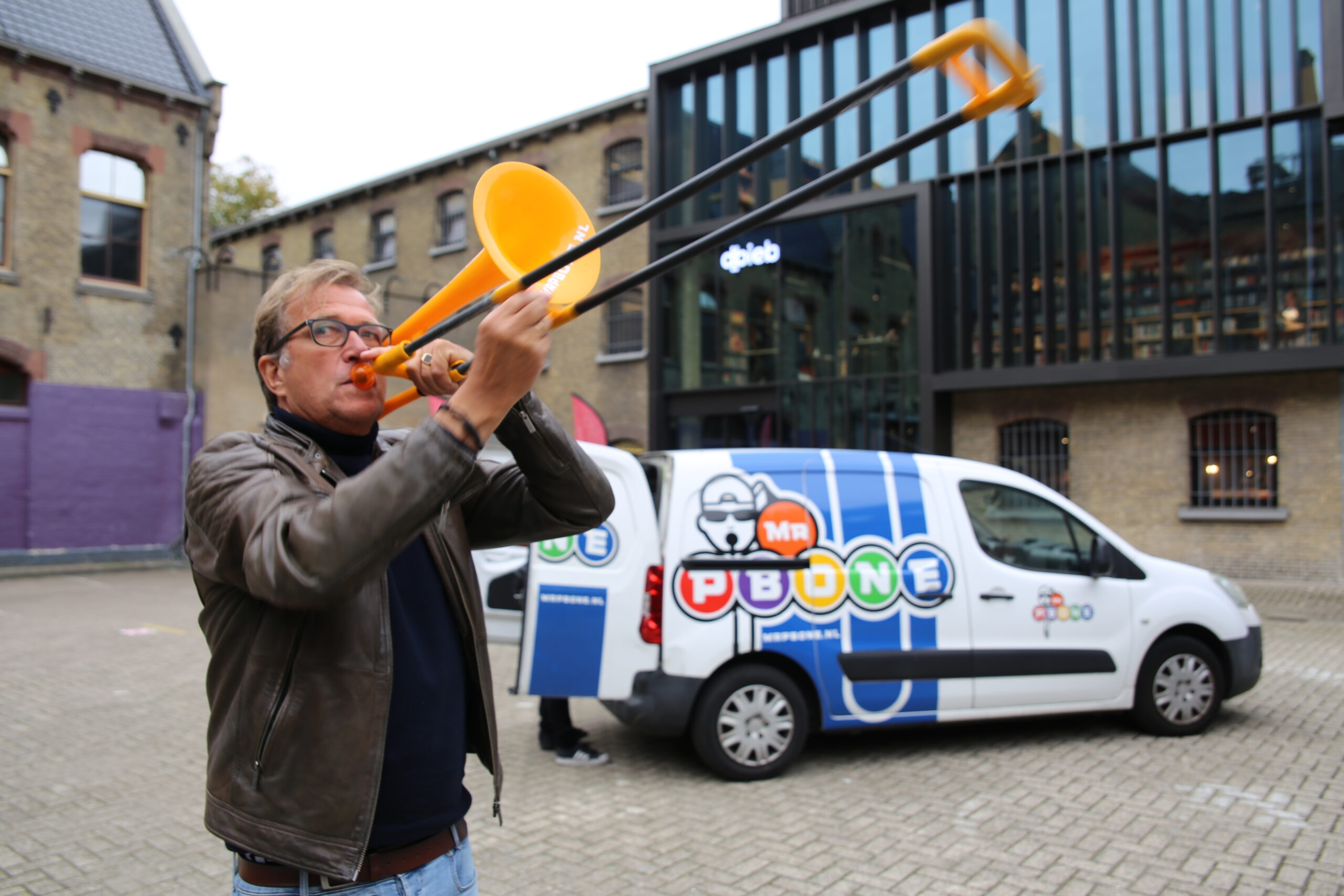Ben je na al die passieve lezingen, lintjesknipperij, curling, sumoworstelpartijtjes, koekhappen en de Tsjakkaa-goeroe op zoek naar iets unieks voor je team, afdeling, bedrijf, organisatie? Boek dan mr pBone! Hij komt voorrijden met een bus volgeladen met pBones, felgekleurde trombones.